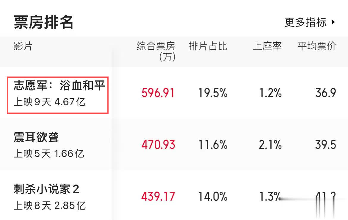 成绩最耀眼的作品《志愿军:浴血和平》,目前累计票房也仅有4亿多,预测总票房6亿出头,其余电影就更不必多说。